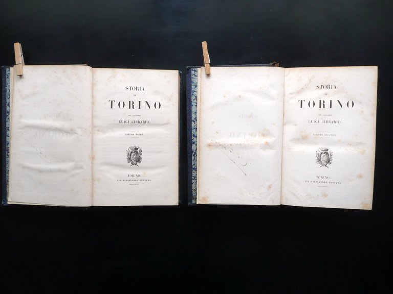 Storia di Torino del Cavaliere Luigi Cibrario Fontana 1846 2 Volumi Completo