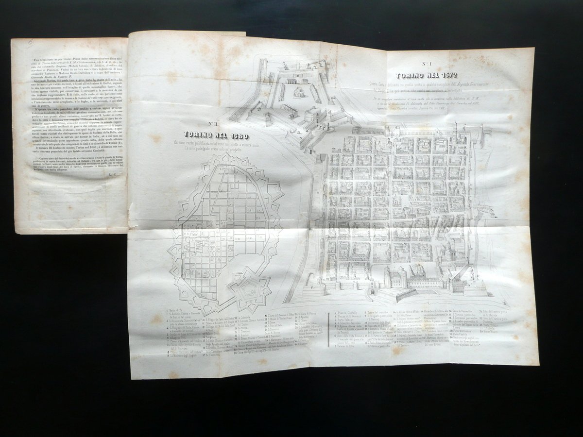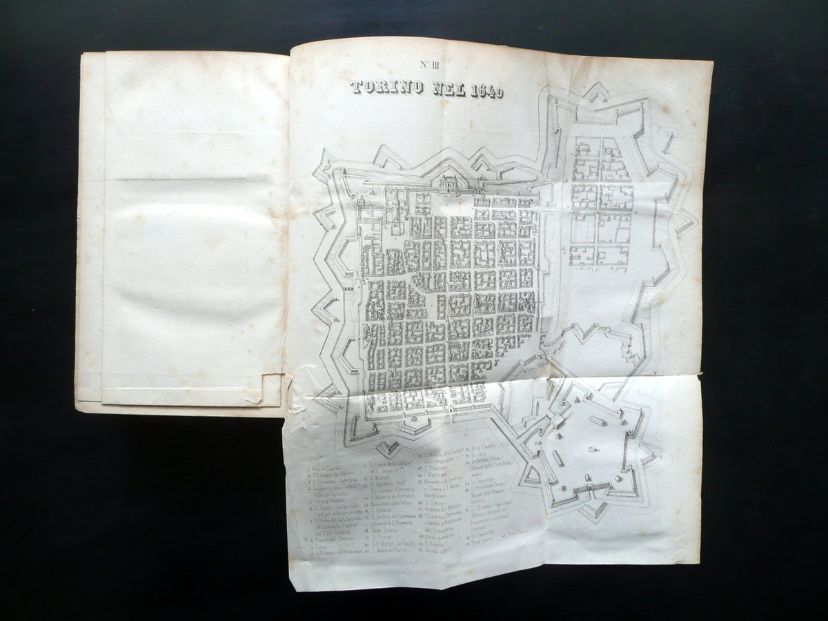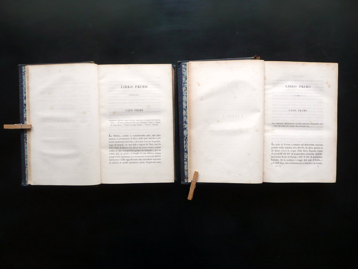Luigi Cibrario, Storia di Torino del Cav. Luigi Cibrario Volume primo - secondo (opera completa in due volumi) Per Alessandro Fontana, Torino 1846; cm 20,5x13,5; pp. X-532 (volume I); pp. 780, pi√π due tavole incise in b/n e rip. pi√π volte fuori t. (volume II); legatura d'epoca in mezza pelle con titolo e fregi impressi in oro al dorso con nervature. Antiporta di ciascun volume con nome del precedente proprietario annotato a penna. Opera completa in due volumi. Condizioni di conservazione Volumi entrambi ben conservati con tracce d'uso, coperta con poche circoscritte mancanze e piccole / minime abrasioni principalmente al dorso. Interni buoni con alcune leggere bruniture; cerniere interne fessurate ma esemplari compatti; una tavola incisa con piccolo strappetto (vedi foto). Opera completa in due volumi. SETT175.L15791 N