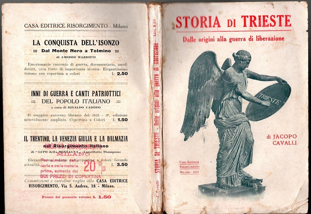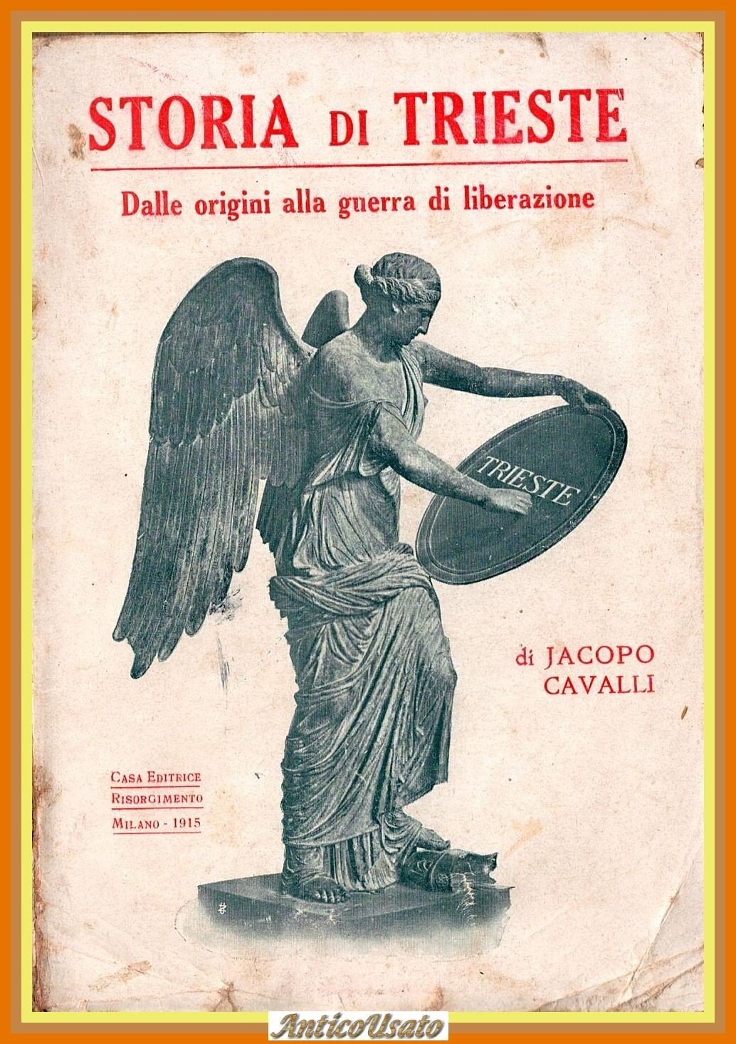 STORIA DI TRIESTE DALLE ORIGINI ALLA GUERRA DI LIBERAZIONE di Jacopo Cavalli. Risorgimento Editore, 1915. 159 pagine. Copertina editoriale in brossura. Stato di conservazione: molto buono (pagine normalmente ingiallite, piccole imperfezioni alla copertina) Libro usato saggistica storia locale irredentismo