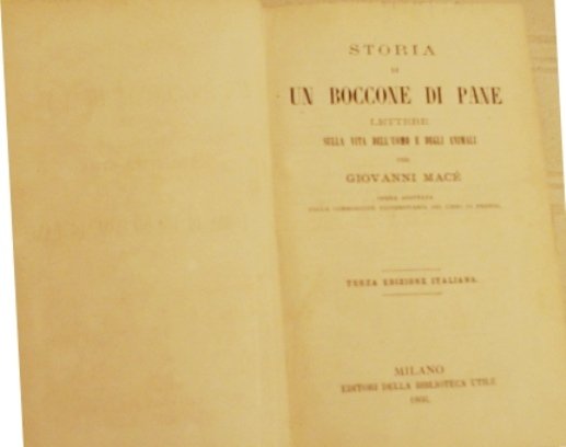 Storia di un boccone di pane. I servitori dello stomaco in continuazione alla storia d'un boccone di pane. Lettere sulla vita dell'uomo e degli animali. Opera adottata dalla Commissione Universitaria dei libri di premio. Terza edizione italiana.