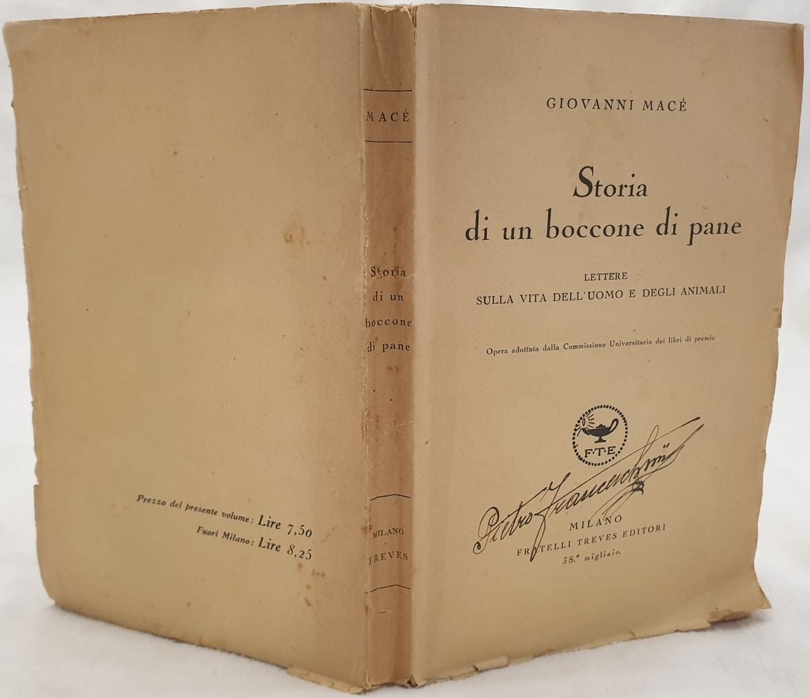 Edizione del 1928, 38° migliaio di questa opera sull'uomo e gli animali scritta da Jean Macè (1815-1894) insegnante massone e politico francese. La prima parte è dedicata all'uomo con descrizione degli organi e sistemi. La seconda parte dedicata agli animali, la classificazione, mammiferi, uccelli, rettili, pesci, insetti, crostacei e molluschi, vermi e zoofiti, nutrizione delle piante ecc. Firma al frontespizio. In buone condizioni. Copertina editoriale in buone condizioni generali con lievi usure ai margini e dorso. Legatura in buone condizioni. All'interno le pagine si presentano in ottime condizioni con rare fioriture. In 8. Dim. 19x12,5 cm. Pp. VIII+260. Edition of 1928, 38° thousand of this work about man and animals written by Jean Macè (1815-1894) french educator, freemason and politician. the first part is dedicated to man wirth description of organs and systems. The second part to animals, their classification, mammals, birds, reptiles, insects, crostaceous, worms and zoofits, nutrition of plants etc. Signature in the title page. In good conditions. Copertina editoriale in buone condizioni generali con lievi usure ai margini e dorso. Legatura in buone condizioni. All'interno le pagine si presentano in ottime condizioni con rare fioriture. In 8. Dim. 19x12,5 cm. Pp. VIII+260. In good conditions. Editorial cover in good general conditions lightly worn in the extremities. Binding in good conditions. Inside pages are in very good conditions with occasional foxings. In 8. Dim. 19x12,5 cm. Pp. VIII+260.