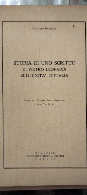 Storia di uno scritto di pietro leopardi sull'unita d'italia.