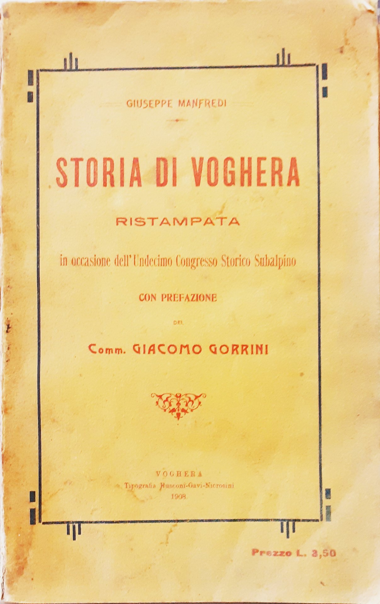 STORIA DI VOGHERA, RISTAMPATA IN OCCASIONE DELL'UNDICESIMO CONGRESSO STORICO SUBALPINO.