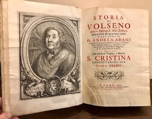 Storia di Volseno antica Metropoli della Toscana descritta in quattro libri dall’abbate D. Andrea Adami. e dedicata alla Gloriosa Vergine, e Martire S. Cristina concittadina sua. Tomo primo (e Tomo secondo)