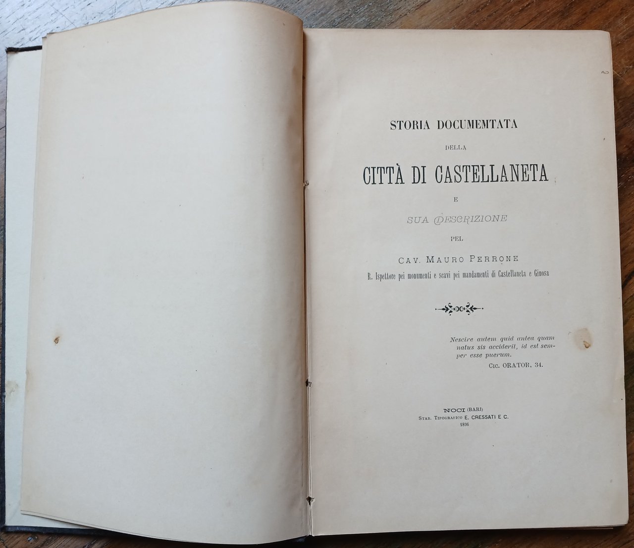 Storia documentata della Città di Castellaneta e sua descrizione, pel Cav. Mauro Perrone R. Ispettore pei monumenti e scavi pei mandamenti di Castellaneta e Ginosa.