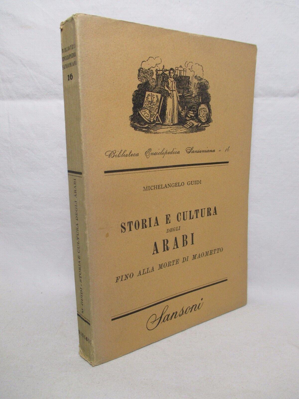 In – 16mo, brossura editoriale illustrata, pp. 230 ( 2 ). Introduzione di Laura Guidi. " Biblioteca Enciclopedica Sansoniana " vol. XVI. Indice del volume: L’Arabia e i suoi abitanti; Il popolo d’Arabia e la sua storia prima dell’Islam; Il profeta Maometto; Indice dei nomi propri e dei vocaboli arabi.