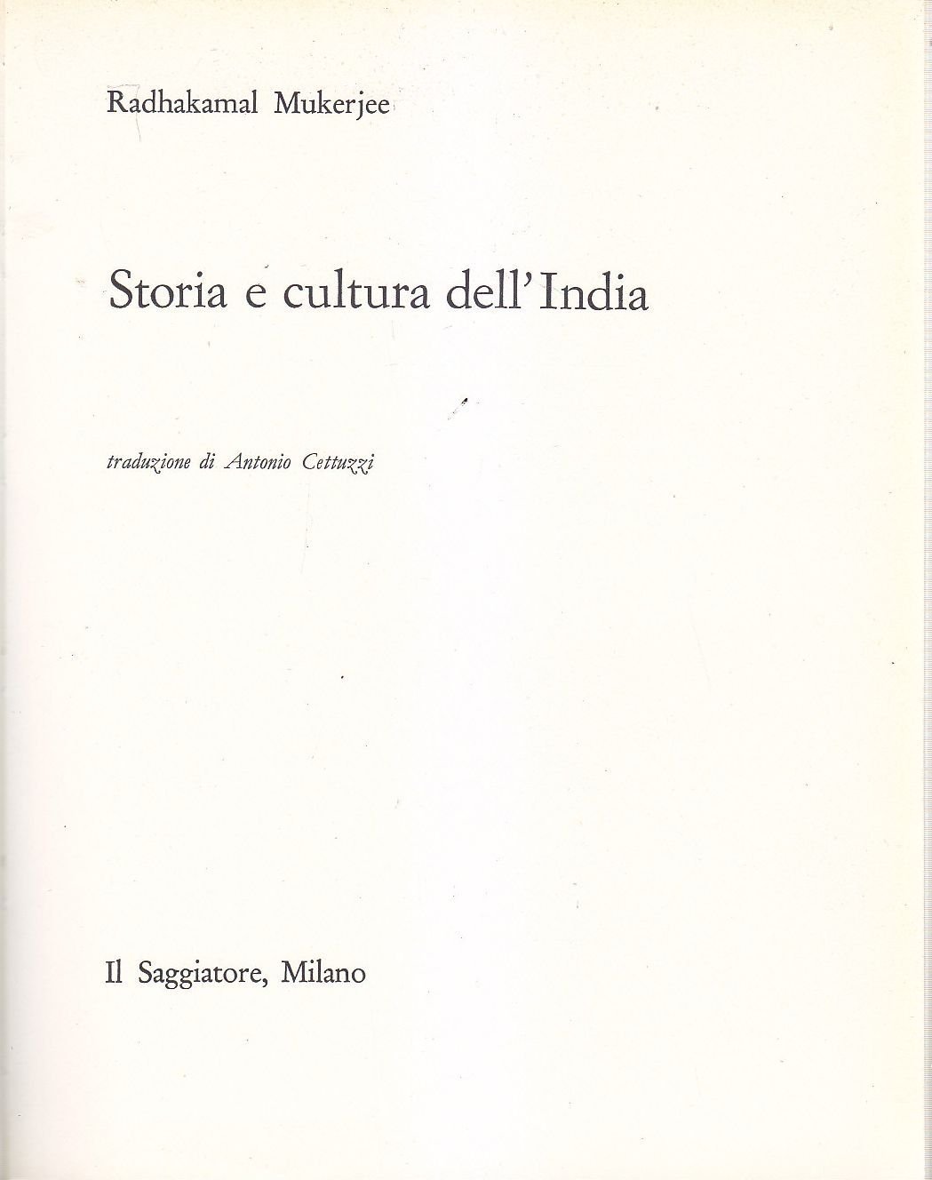 STORIA E CULTURA DELL'INDIA Radhakamal Muherjee 1962 Il Saggiatore libro usato