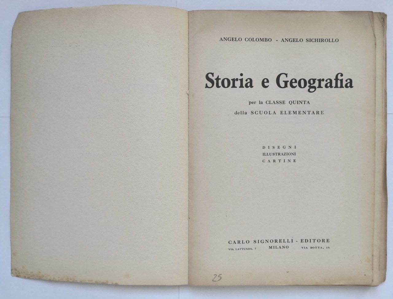 STORIA E GEOGRAFIA di Angelo Colombo e Angelo Sichirollo. Per la Scuola Elementare. Classe quinta.