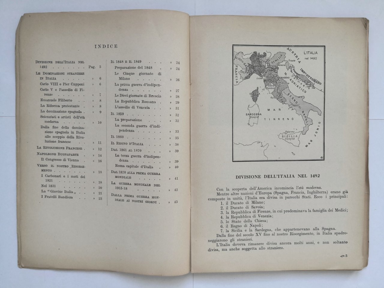 Editore Carlo Signorelli, 1947. 112 pagine, figure in bianco e nero nel testo e fuori testo, carta geografica a colori fuori testo. Allegato: la costituzione, riassunto ad uso scolastico. Copertina editoriale in brossura. Stato di conservazione: molto buono (pagine normalmente ingiallite, legatura un po' allentata) Libro usato saggistica scolastico d'epoca