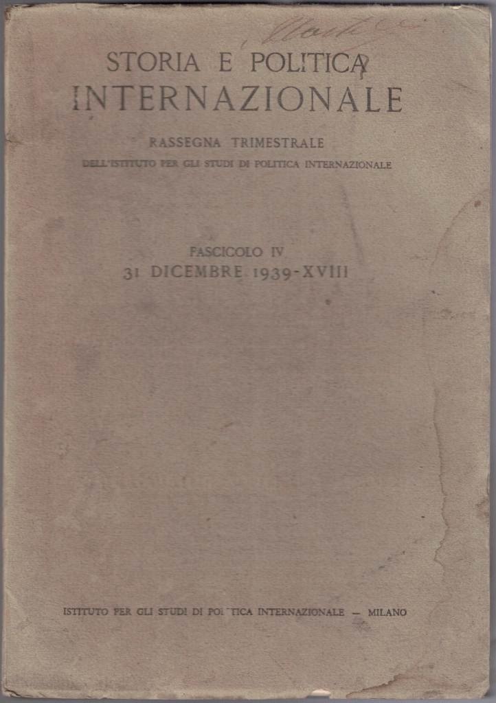 Storia e politica internazionale, fasc. IV, 31 dicembre 1939