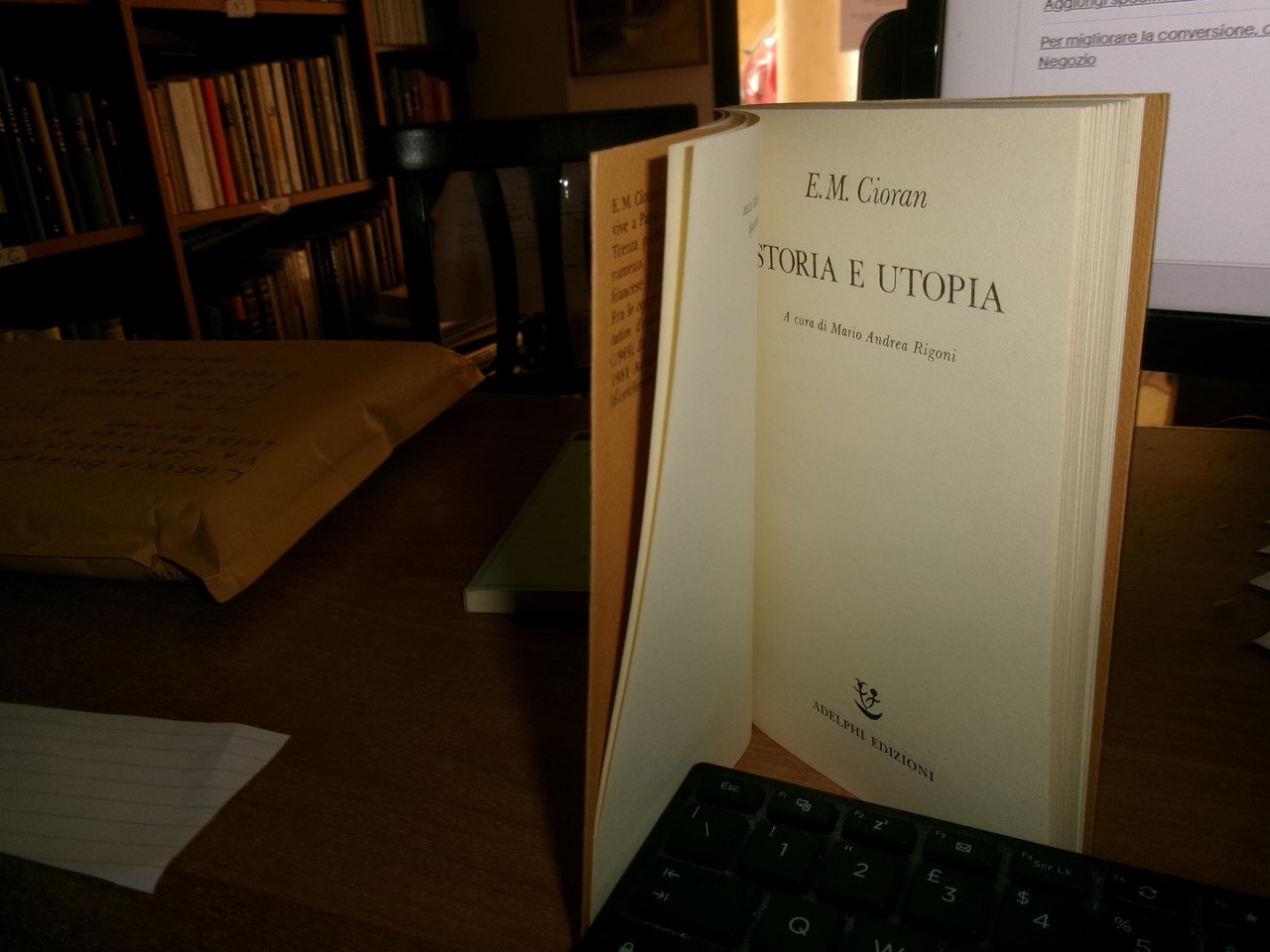 E. M. CIORAN. Milano, Adelphi, 1982. STORIA E UTOPIA. In-16°, cart. edit. con risvolti. 166 pp. Come nuovo. Neg. esot. mob. 10