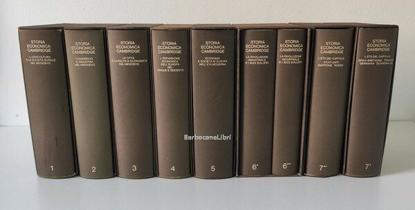 I primi sette volumi (in nove tomi) dell'imponente opera The Cambridge Economic History of Europe edita dalla Cambridge University Press, pubblicata e tradotta in Italia da Giulio Einaudi: