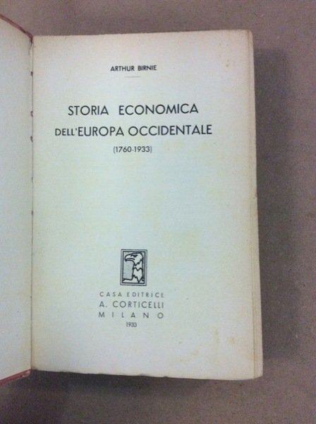 STORIA ECONOMICA DELL'EUROPA OCCIDENTALE DAL 1760 AL 1933.