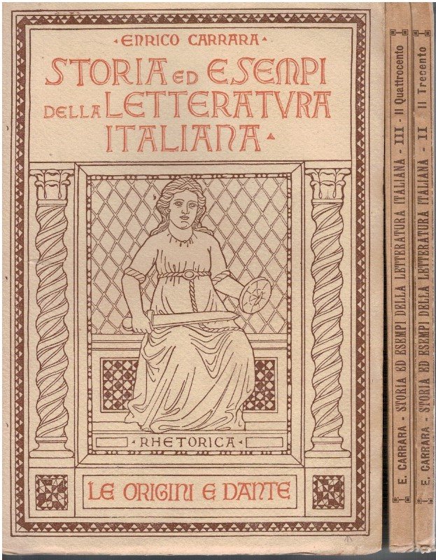 Tre volumi "Le origini e Dante", "Il trecento" e "Il quattrocento", buone copie ben conservate con illustrazioni d'arte. Possibili interventi a matita nel testo, legature salde e fruibili.