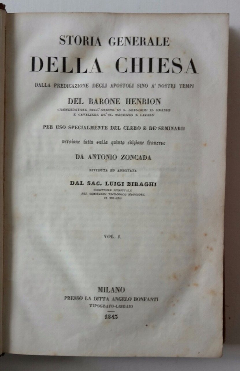 STORIA GENERALE DELLA CHIESA HENRION MILANO BONFANTI 1850