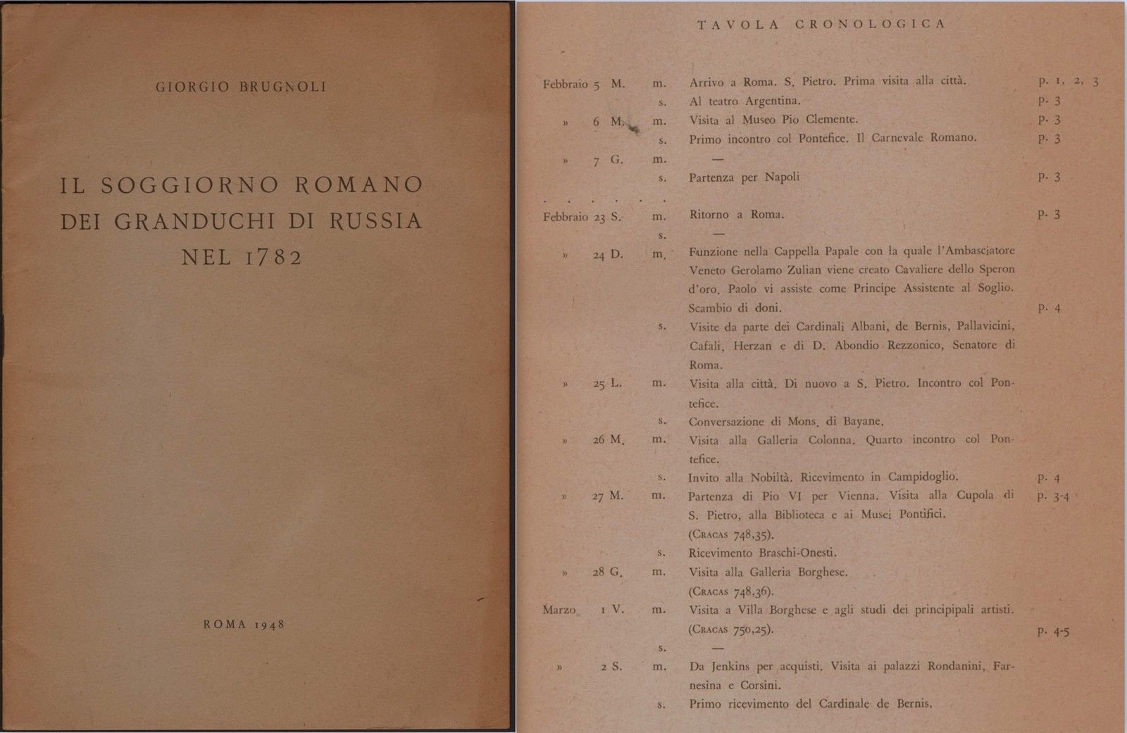 Storia-Il Soggiorno Romano Dei Granduchi Di Russia Nel 1782-G.Brugnoli-Roma 1948