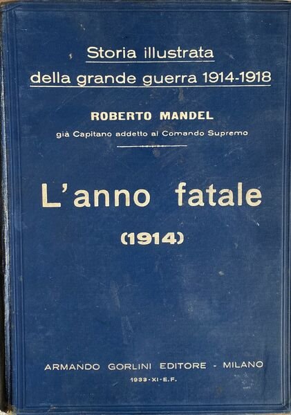 6 volumi in 8°, legatura editoriale. blu con titoli ai piatti e al dorso.5 voll. riccamente illustrati: Vol. 1 "L'anno fatale (1914)" - Vol. 2 "L'anno di passione (1915)" - Vol. 3 "L'anno d'angoscia (1916)" - Vol.4 "L'anno terribile (1917)" - Vol. 5 "L'anno di gloria (1918)". VI volume. Scorci e riverberi e il VII vol. costituito da tavole. Ricchi indici alla fine di ogni volume ed indice delle illustrazioni. Mandel fu noto storico e scrittore nato a Treviso da una famiglia di origini turco-afghana. Esemplare con dorsi lggermente allenati.