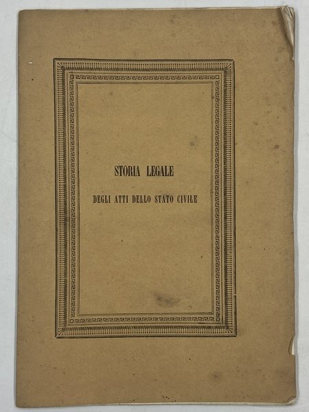 STORIA LEGALE DEGLI ATTI DELLO STATO CIVILE.