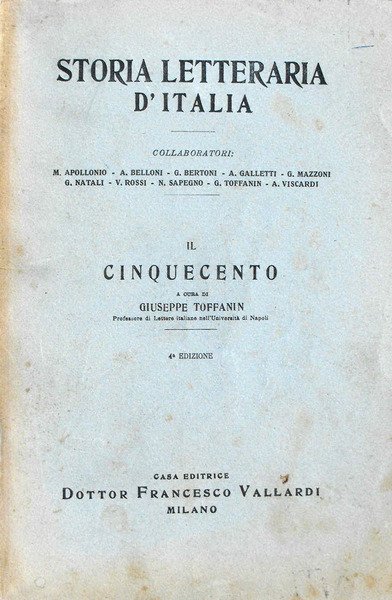 Edizione: terza-quarta edizione dell'opera - volume appartenente alla serie: storia letteraria d'italia.