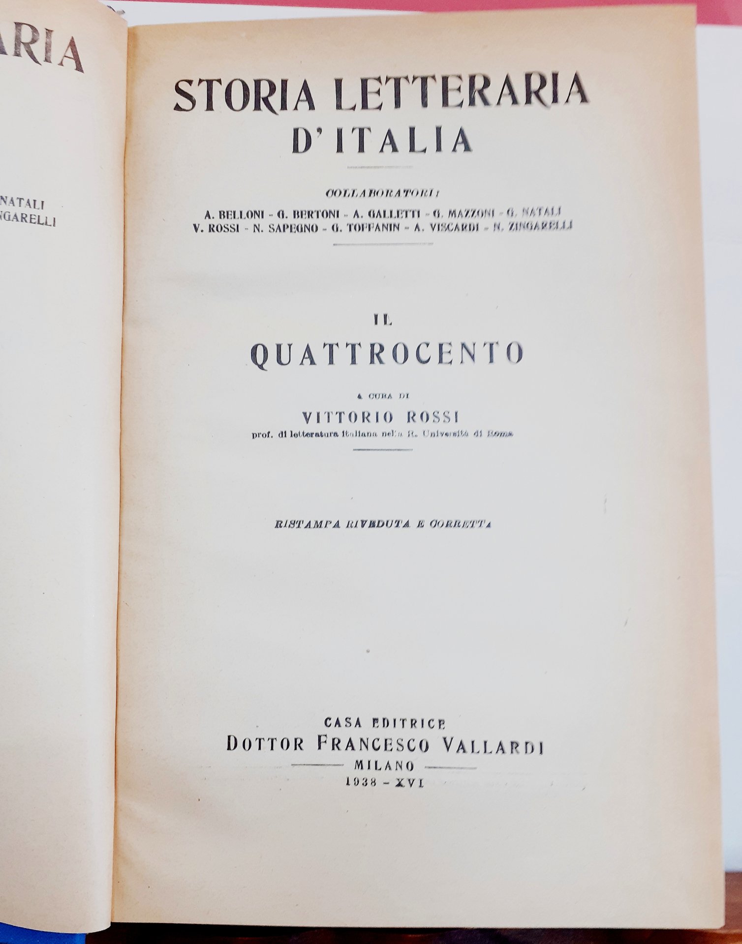 STORIA LETTERARIA D'ITALIA: IL QUATTROCENTO. A cura di Vittorio Rossi.