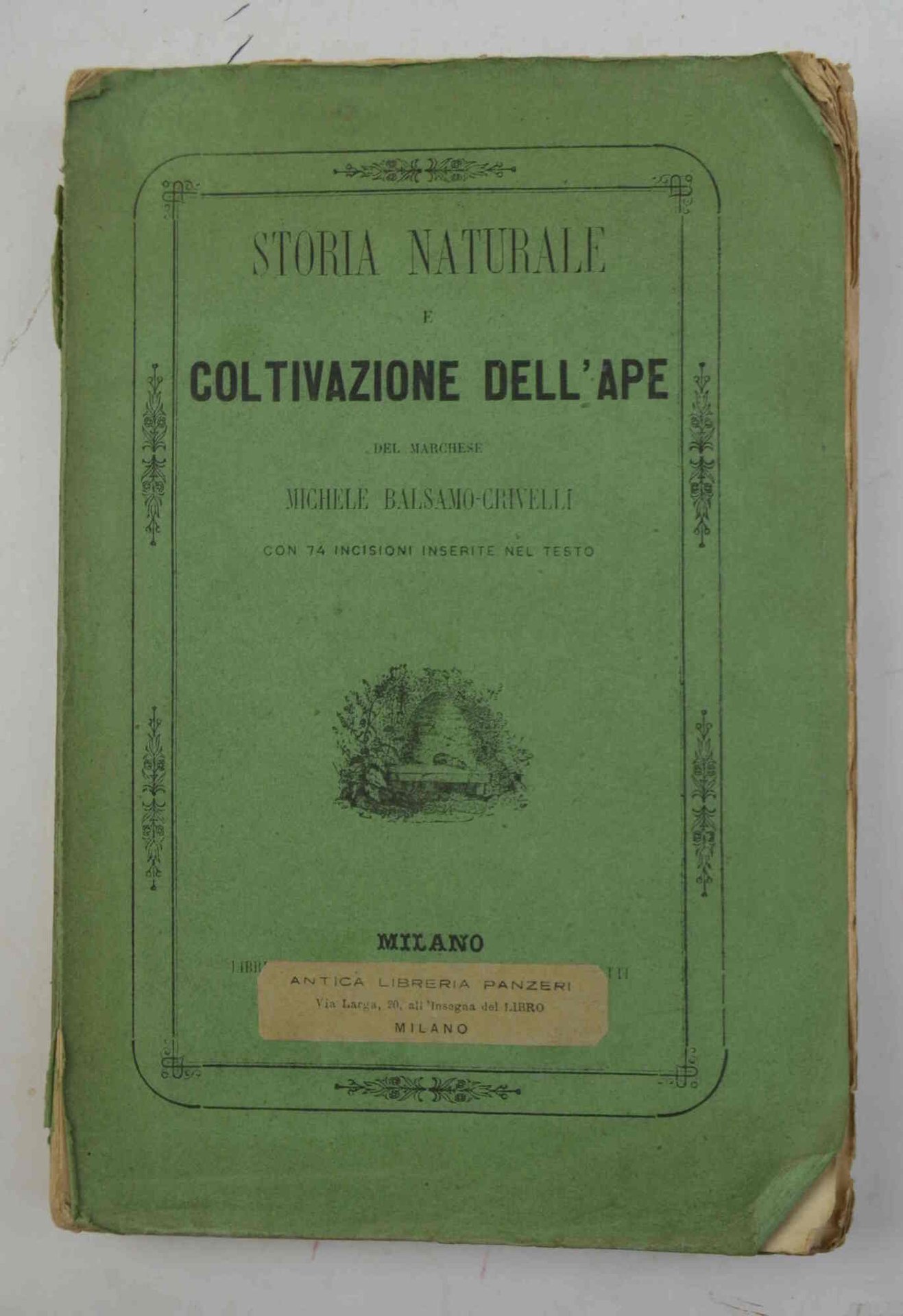 Cm. 23,5,, pp. xiv, 272. con 74 illustrazioni in xilografia intercalate al testo. Brossura editoriale. Qualche traccia d'uso, ma esemplare complessivamente genuino e ben conservato. Prima edizione di questo manuale di apicoltura diviso in due parti: Storia naturale dell'ape e La coltivazione delle api.