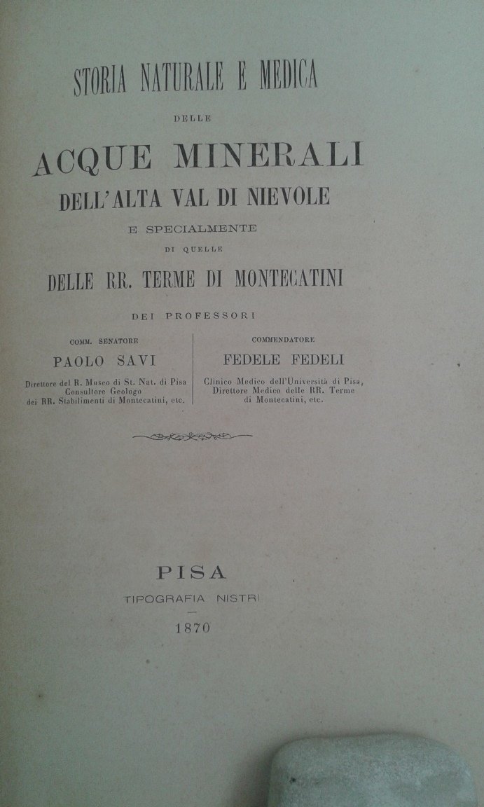 STORIA NATURALE E MEDICA DELLE ACQUE MINERALI DELL'ALTA VAL DI NIEVOLE E SPECIALMENTE DI QUELLE DELLE RR. TERME DI MONTECATINI.