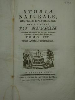 Storia Naturale, generale e particolare del sig. Conte DI BUFFON intendente del giardino del Re, dell'accademia Francese, e di quella delle Scienze ec. Tomo XXV degli animali quadrupedi.