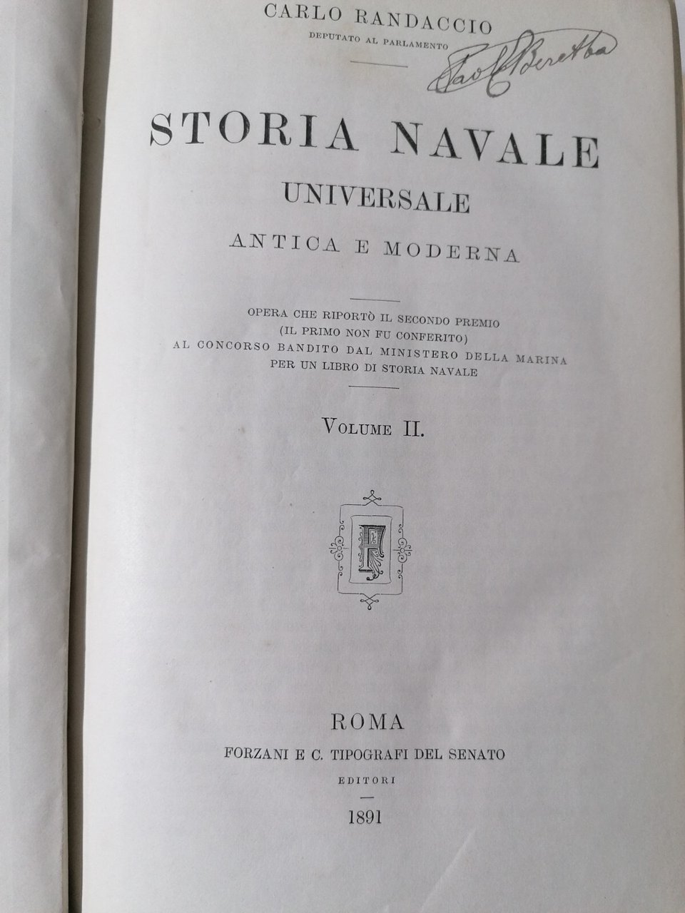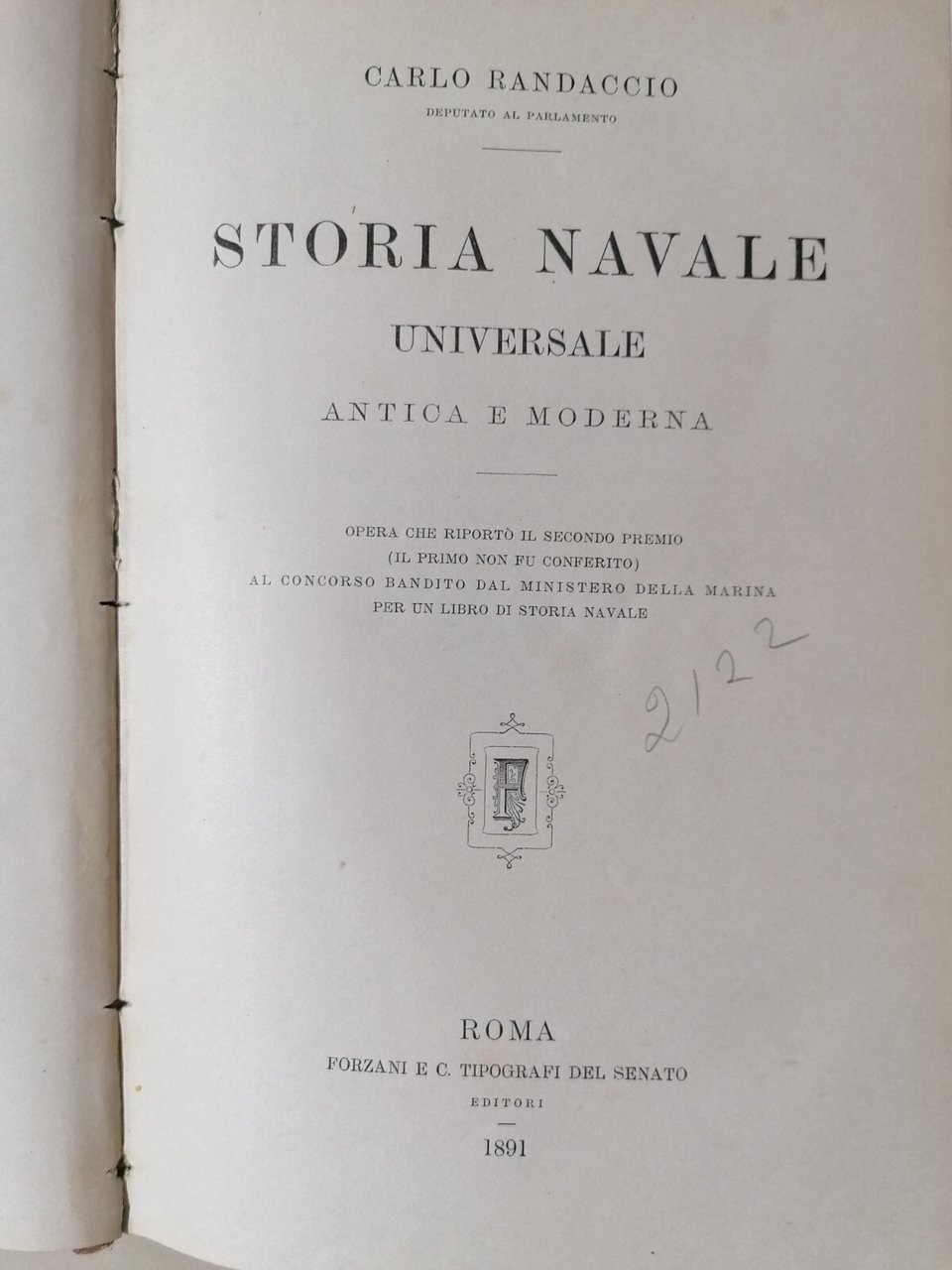 Editore: Forzani e C. Tipografi del Senato Condizioni: buone. Per errore nel primo volume il titolo al dorso riporta "volume II", ma sono due volumi distinti, primo e secondo