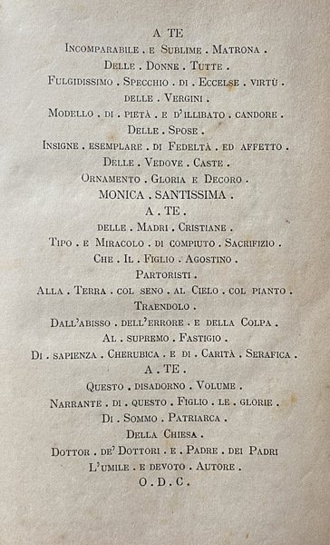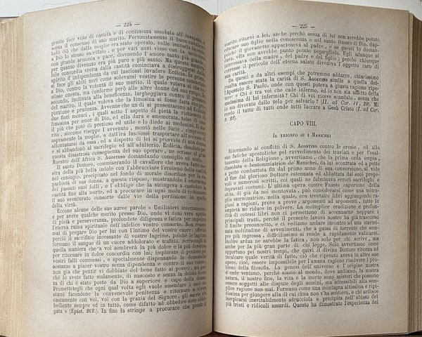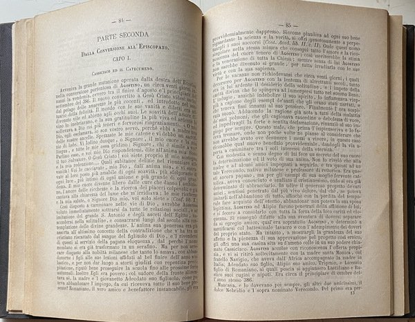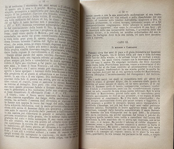 Soggetti: Sant'Agostino, Santi, Beati, Biografie, Agiografie, Libri antichi da collezione, Ottocento, Rarità librarie, Collezionismo, Vita, Opere generali, Padri della Chiesa, Regola, Agiografia, Confessioni, 397, Religione, Teologia, Medioevo, Retractationes, Confessiones, Biografie, Autobiografia interiore, Percorso spirituale, Spiritualità, Scritti religiosi, Classici, che Conversione, Cristianesimo, Dottrina cristiana, Scolastica, Filosofia medievale, Dio, Misericordia, Meditazioni, Vita, Corruzione, Anima, Francesco Petrarca, Riscatto morale, Amore terreno, Gloria, Elevazione spirituale, Laura, Donna, Creatura mortale, Bene, Virtù, Memorie, Santi, Beati, Patristica, Padri della Chiesa, Viaggio, Italia, Successi mondani, Mondanità, Caducità, Africa, Dramma privato, Divino, Dubbi teologici, Morte, Letture colte, Ricordi, Riflessioni, Fede, Verità, Speranza, Disperazione, Dialogo intimo, Tormento, Mistero, Creazione, Opere filosofiche, Peccato, Contemplazione, Passioni, Debolezze, Umanità, Destino, Problema del Male, Metafisica, Tempo, Esistenza umana, Grandi capolavori, Neoplatonismo, Pensiero medievale, Tarsia letteraria, Stile, Citazioni, Bibbia, Cristianità, Grandezza, Catastrofe, Bisanzio, Domine, Saint Augustine, Bishop of Hippo, Citazioni bibliche, Bibliografia, Commentario, Critica, Ermeneutica, Esegesi biblica, Filologia, Interpretazione, Etudes sur le latin des Chrétiens, Revisioni, Tredici Libri, Michele Pellegrino, Letteratura, Racconti, Storie vere, Paolino di Nola, P. Monceaux, Tertulliano, Ed. Norden, A. Puech, Pietro Batiffol, Gregorio di Nazianzio, Tristia, Ovidio, Tradizione, Occidente, Oriente, Impero Romano, Salmi, Preghiera, Preghiere, Narratio, Retorica, Psicologia, Autoanalisi, Introspezione psicologica, Giardino, Tolle et lege, P. Courcelle, Gaston Boissier, A. von Harnack, Greco, Opere letterari antiche, Edizioni critiche, Saggi filosofici, Libri Vintage fuori catalogo, Henricus de Bocholdia, Struttura, Confessio peccatorum, Dissolutezze, Errori, Laus dei, Lode, Giovanni Reale, Carlo Carena, V secolo, Agostinismo, Temi, Felicità, Filosofia greca, Grazia divina, Salvezza, Provvidenza, Battesimo, Sacramenti, San Paolo, Sant'Ambrogio, Tagaste, Madaura, Manicheismo, Eretici, Ladri, Rubare, Fornicare, Matrimonio, Relazioni, Monica, Mosè, Isacco, Sacra Scrittura, Trinità, Platone, Antico e Nuovo Testamento, Infanzia, Bambini, Invidia, Malvagità, Cartagine, Ortensio, Cicerone, Simpliciano, Mario Vittorino, Sacre Scritture, Genesi, Presente, Passato, Memoria, Intuizione, Futuro, Attesa, Figlio illegittimo, Concubina, Calama, Episcopato, Manichei, Pelagianesimo, Pelagio, Pelagiani, Sacco di Roma, Chiostro, Severo Milevitano, Volusiano, Epistole, Corrispondenza, Ricchezze, Laudi, Culto, Prodigi, Patrocinio, Girolamo, Possidio, Catecumeni, Saint Augustine, Saints, Blesseds, Biographies, Hagiographies, Collectible old books, Nineteenth century, Rarities, Collectionist, Life, General works, Fathers of the Church, Rule, Hagiography, Religion, Theology, Middle Ages, Confessions, Retractationes, Biographies, Inner autobiography, Spiritual journey, Spirituality, Religious writings, Classics, Conversion, Christianity, Christian doctrine, Scholasticism, Medieval philosophy, God, Mercy, Meditations, Life, Corruption, Soul, Francesco Petrarca, Moral redemption, Earthly love, Glory, Spiritual elevation, Laura, Woman, Mortal creature, Good, Virtue, Memoirs, Saints, Blessed, Patristics, Fathers of the Church, Journey, Italy, Worldly successes, Worldliness, Transience, Private drama, Divine, Theological doubts, Death, Cultured readings, Memories, Reflections, Faith, Truth, Hope, Despair, Intimate dialogue, Torment, Mystery, Creation, Philosophical works, Sin, Contemplation, Passions, Weaknesses, Humanity, Destiny, Problems ma del Evil, Metaphysics, Time, Human existence, Great masterpieces, Neoplatonism, Medieval thought, Literary inlay, Style, Quotes, Bible, Christianity, Greatness, Catastrophe, Byzantium, Biblical quotes, Bibliography, Commentary, Criticism, Hermeneutics, Biblical exegesis, Philology, Interpretation, Revisions, Thirteen Books, Michele Pellegrino, Confessio laudis, Literature, Tales, True Stories, Paulinus Tertullian, Gregory of Naziantius, Ovid, Tradition, West, East, Roman Empire, Psalms, Prayers, Narratio, Rhetoric, Psychology, Self-analysis, Psychological introspection, Garden, Greek, Ancient literary works, Critical editions, Philosophical essays, Out-of-print books, Structure, Debauches, Errors, Praise, 5th century, Augustinianism, Themes, Happiness, Greek philosophy, Divine Grace, Salvation, Providence, Baptism, Sacraments, Saint Paul, Saint Ambrose, Manichaeism, Heretics, Thieves, Stealing, Fornication, Marriage, Relationships, Monica, Moses, Isaac, Sacred Scripture, Trinity, Plato, Old and New Testament, Childhood, Children, Envy, Evil, Carthage, Hortensius, Cicero, Simplicianus, Marius Victorinus, Sacred Scripture, Genesis, Present, Past, Memory, Intuition, Future, Expectation, Son illegitimate, Episcopate, Manichaeans, Pelagianism, Pelagius, Pelagians, Sack of Rome, Cloister, Severus Milevitanus, Volusianus, Epistles, Correspondence, Riches, Praises, Cult, Prodigies, Patronage, Jerome, Catechumens
