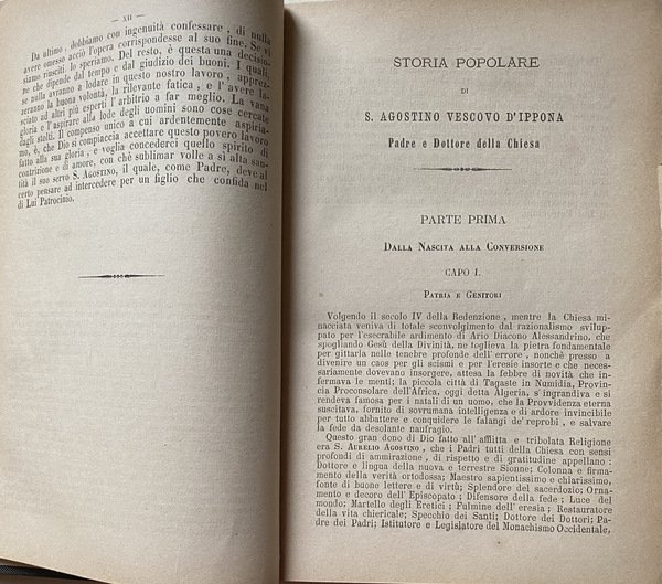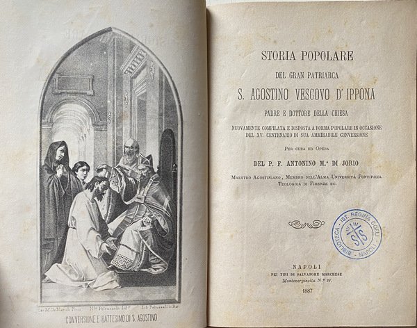STORIA POPOLARE DEL GRAN PATRIARCA S. AGOSTINO VESCOVO D' IPPONA, PADRE E DOTTORE DELLA CHIESA, NUOVAMENTE COMPILATA E DISPOSTA A FORMA POPOLARE IN OCCASIONE DEL XV CENTENARIO DI SUA AMMIRABILE CONVERSIONE, PER CURA ED OPERA DEL P. F. ANTONINO M. DI JORIO