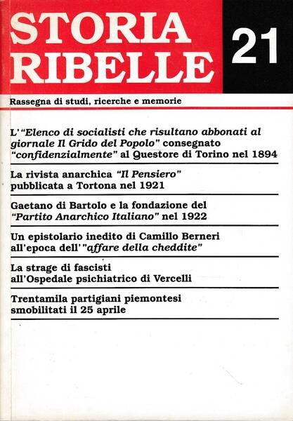Storia ribelle 21. Rassegna di studi, ricerche e memorie