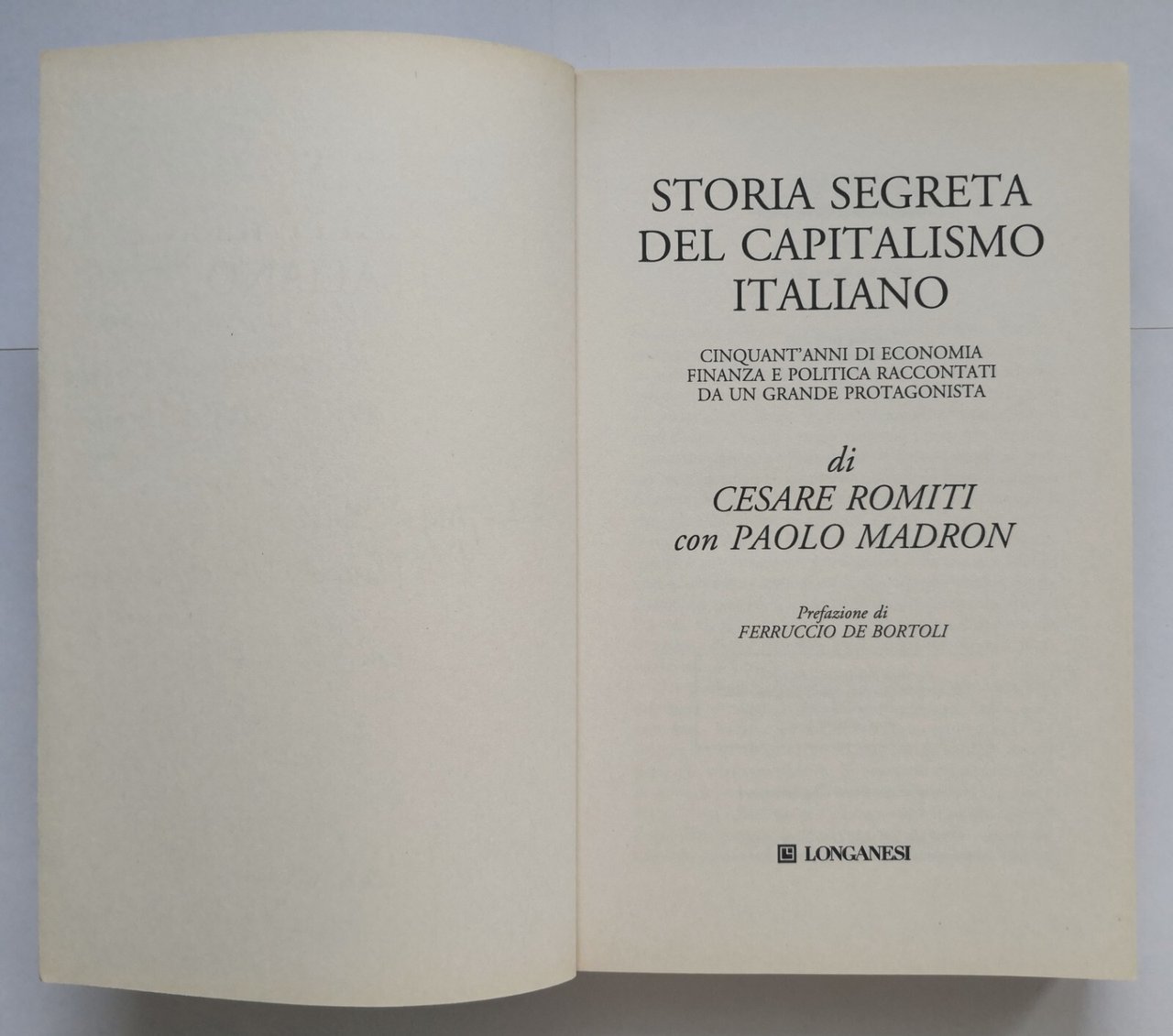 STORIA SEGRETA DEL CAPITALISMO ITALIANO di Romiti e Madron 2012 Longanesi Libro