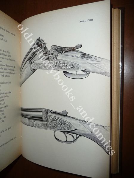 DESCRIZIONE: Ed. Pavoniana, Brescia, 1963, in 8°, leg. edit. tela marrone con disegno e tit. in oro al piatto e tit. in oro al dorso con sovracc. acetata trasparente e cofanetto ed., pp. 399 con 72 tav. b/n f.t. ricche di foto e ill.; 1^ ediz. Opera corposa e fondamentale sulla storia delle armi da fuoco, dalle origini alla metà del XX secolo. Esauriente monografia, con molte foto e fac-simili su 72 tavole fuori testo (di cui 250 marchi su 7 tavole) e 172 disegni nel testo. Indice completo in foto. CONDIZIONI: Ottime. Piccolo danno alla parte bassa in un lato del cofanetto. PESO / WEIGHT: 1350 gr. without package