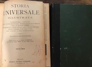 [vt] Narrazione completa degli avvenimenti del mondo dalle sue origini fino ai nostri giorni considerati anche nelle arti, nelle lettere, nelle scienze e in ogni ramo del lavoro e dell'intelligenza. Con circa 1500 vignette. Piccolo strappo riparato al frontespizio, riparazioni con adesivo a pag. 777 e 783, normale brunitura della carta, ordinari segni d'uso e del tempo alle copertina ma buoni esemplari. Pagg. 811, 783