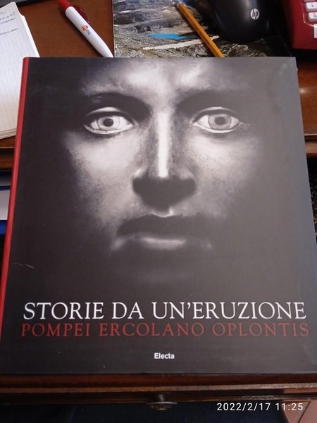 PRIMA EDIZIONE, edito in occasione della mostra allestita presso il Museo Archeologico Nazionale di Napoli dal 20 marzo al 31 agosto 2003 e a Bruxelles presso il Musées Royaux d'Art et d'Histoire dall'8 ottobre 2003 all'8 febbraio 2004 Catalogo della mostra preceduto da tre interventi critici: Storie da un'eruzione di Pier Giovanni Guzzo, Evocazioni letterarie dell'antica Pompei di Eric M. Moormann, Ombre di luce: il cinema peplum e Pompei di Fabrizio Pesando; seguono Storie da un'eruzione: io contesti delle vittime con materiali provenienti da Ercolano, Oplontis, Terzigno, Pompei; Fonti antiche sul tema dell'eruzione. Brossura. Pp. 207. Ottime condizioni, pari al nuovo.