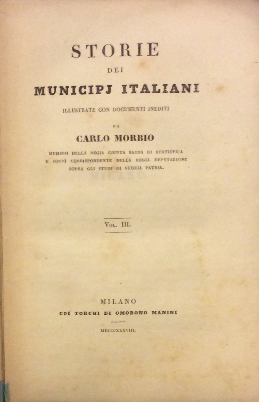 STORIE DEI MUNICIPJ (municipi) ITALIANI: MILANO. - Illustrate con documenti inediti.