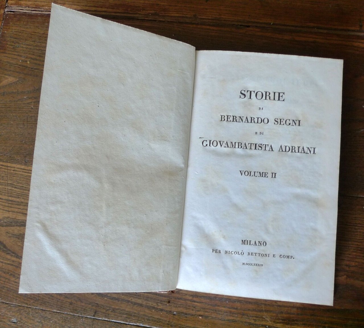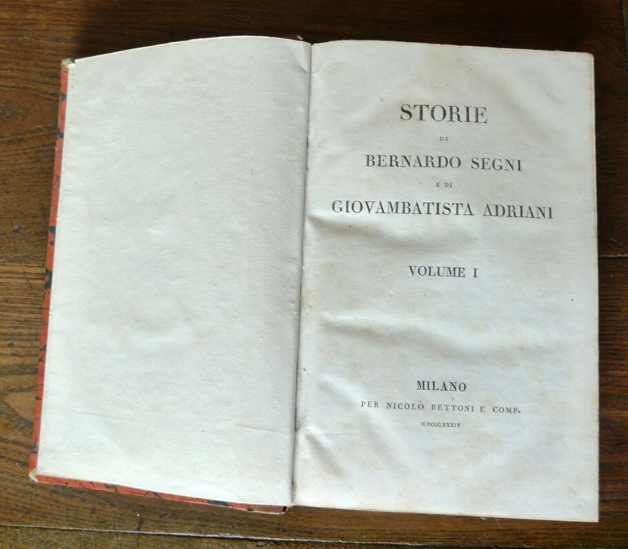 STORIE DI BERNARDO SEGNI E DIGIOVAMBATISTA ADRIANI.VOLUME IVOLUME II[OPERA COMPLETA IN 2 VOLUMI]MILANO, per Nicolò Bettoni e Comp., 1834,copertina rigida, rilegatura coeva in mezza pelle,25x16 cm., pp.XI-635; 555,peso: kg.2,1