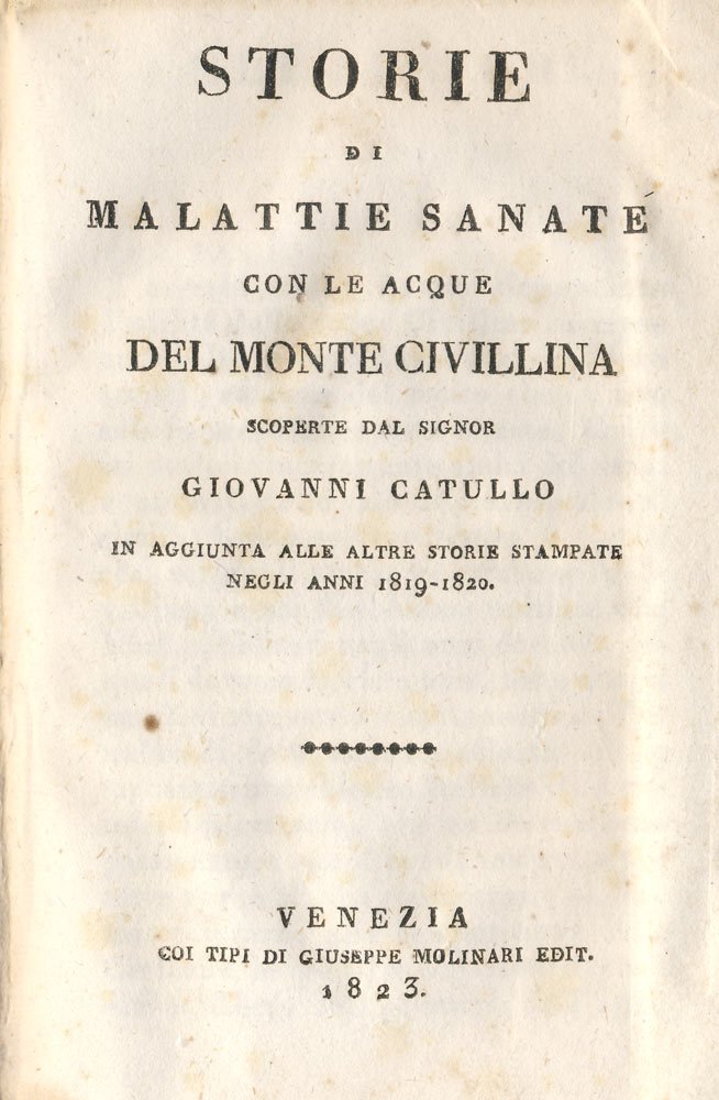 STORIE DI MALATTIE SANATE CON LE ACQUE DEL MONTE CIVILLINA. - Scoperte da Giovanni Catullo, in aggiunta alle altre storie stampate negli anni 1819-1820.