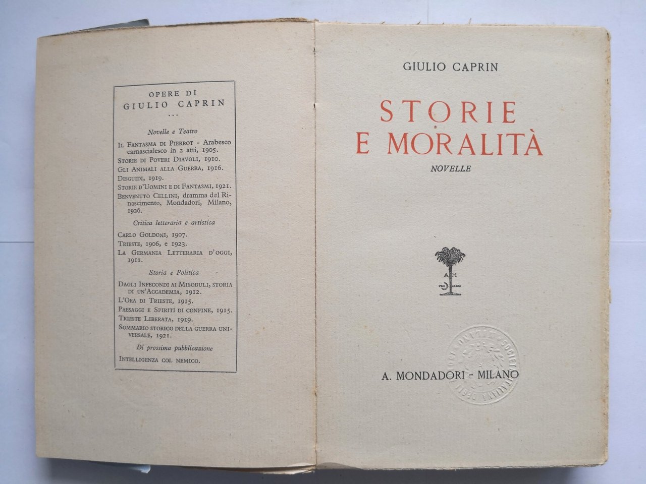 STORIE E MORALITÀ di Giulio Caprin 1927 Mondadori Libri azzurri romanzo novelle