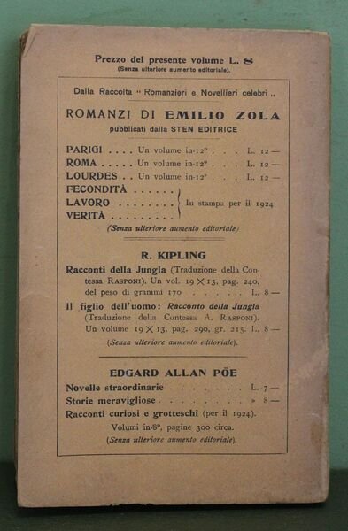 In 16°, pp. 323, (3). Brossura editoriale. Leggeri segni del tempo alla copertina. Tagli leggermente ingialliti. Copia in buono stato, a fogli chiusi. Collana: Romanzieri e Novellieri celebri.