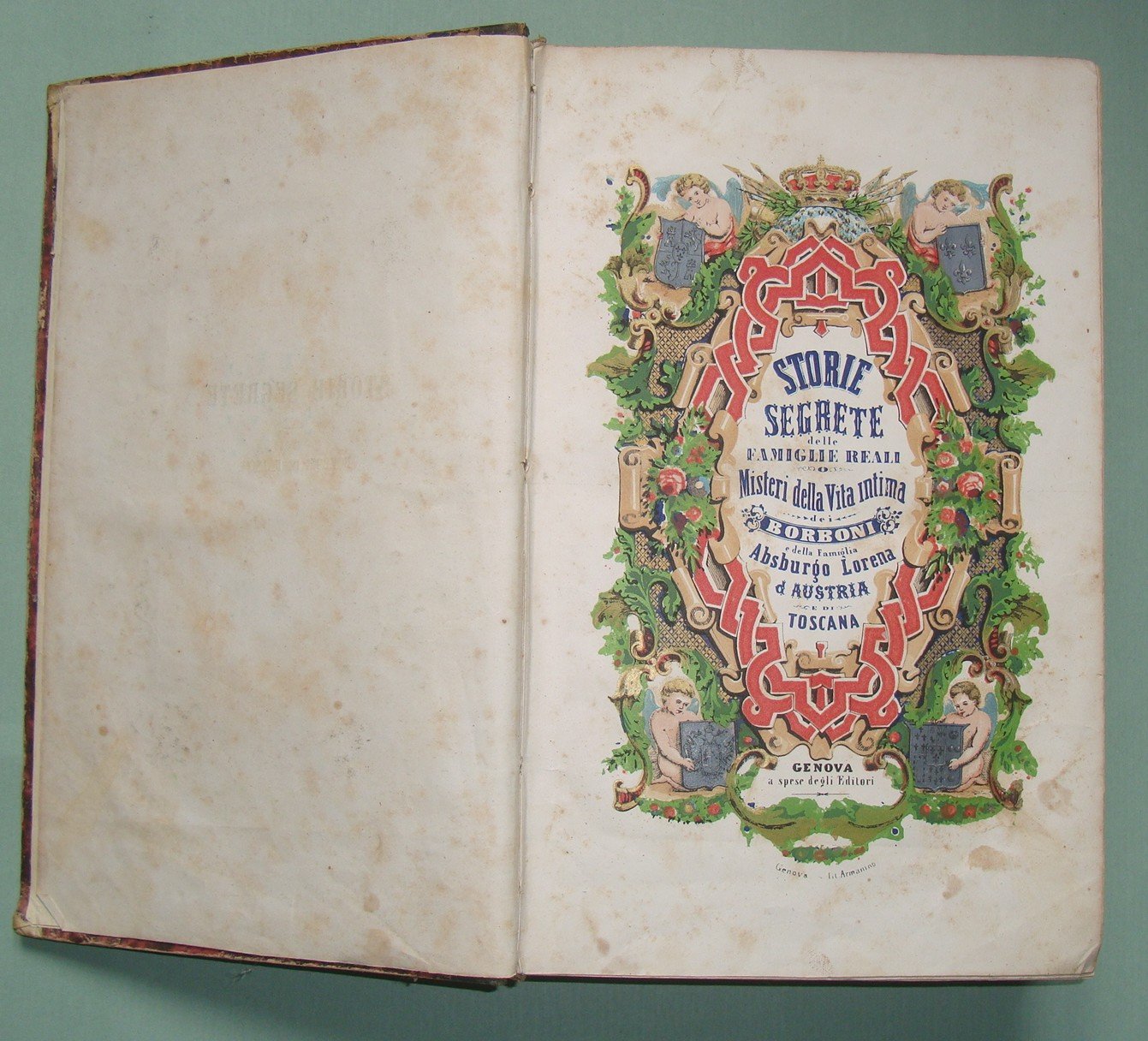 Storie segrete delle famiglie reali e misteri della vita intima dei Borboni di Francia, di Spagna, di Parma, di Napoli e della famiglia Asburgo Lorena d'Austria e di Toscana. Opera corredata di 50 stampe litografiche colorite.