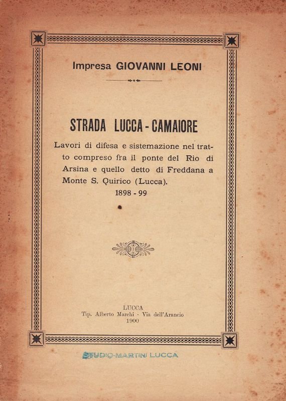 Strada Lucca - Camaiore. Lavori di difesa e sistemazione nel tratto compreso fra il ponte del Rio di Arsina e quello detto di Freddana a Monte S. Quirico (Lucca), 1898-99.