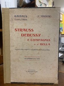 Saggio di critica semplicista e spregiudicata per il gran pubblico. Con prefazione di S. Sani. Copertina rifatta, tagli bruniti, ma buon esemplare. Pagg. XV, 111. Mezza tela moderna con applicata la brossura originale. Mis mm 215x160