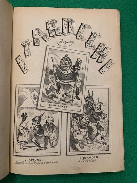 In 8°; 168, (8) pp. Brossura editoriale illustrata. Buono stato di conservazione. Rara strenna del celebre giornale satirico torinese fondato nel 1848 dal disegnatore Lorenzo Pedrone (Icilio) e dal tipografo Giuseppe Cassone, pubblicata, con differenti periodicità, fino al 1916. È considerata la più importante rivista satirica italiana della sua epoca.