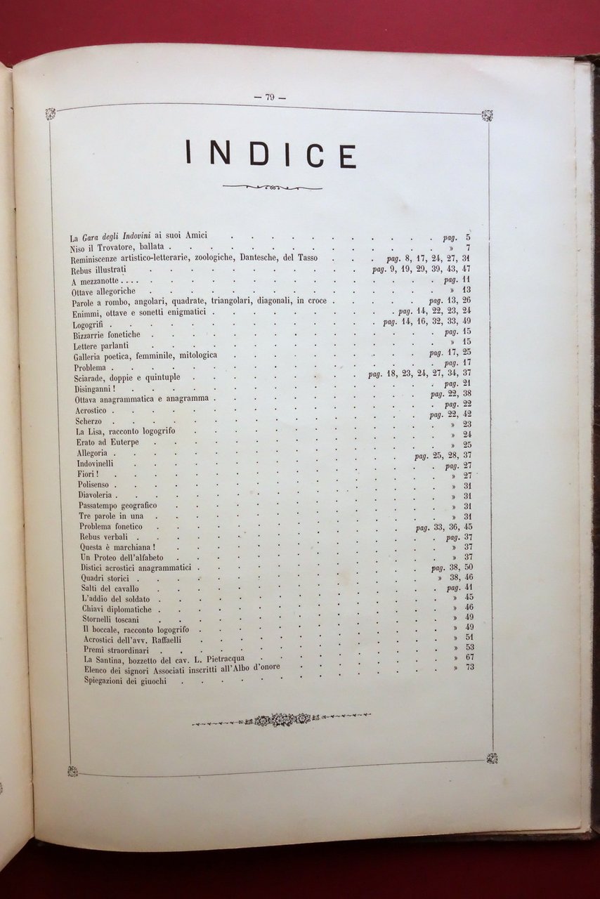 Strenna della Gara degli Indovini Anno Primo Tip. Speirani Torino 1877 Rebus