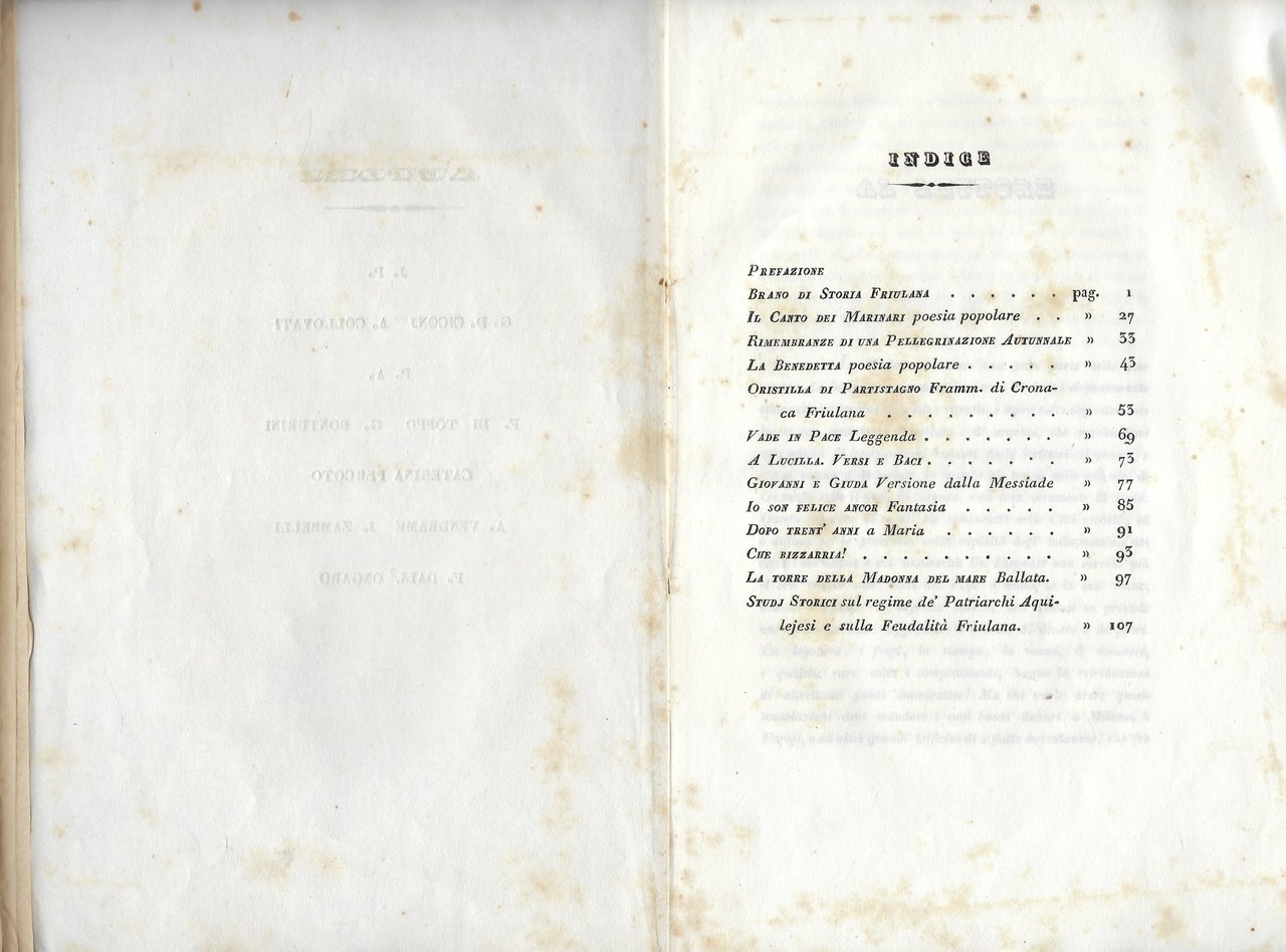 Sono presenti testi del Ciconj, del Bonturini, di Caterina Percoto, del Di Toppo.