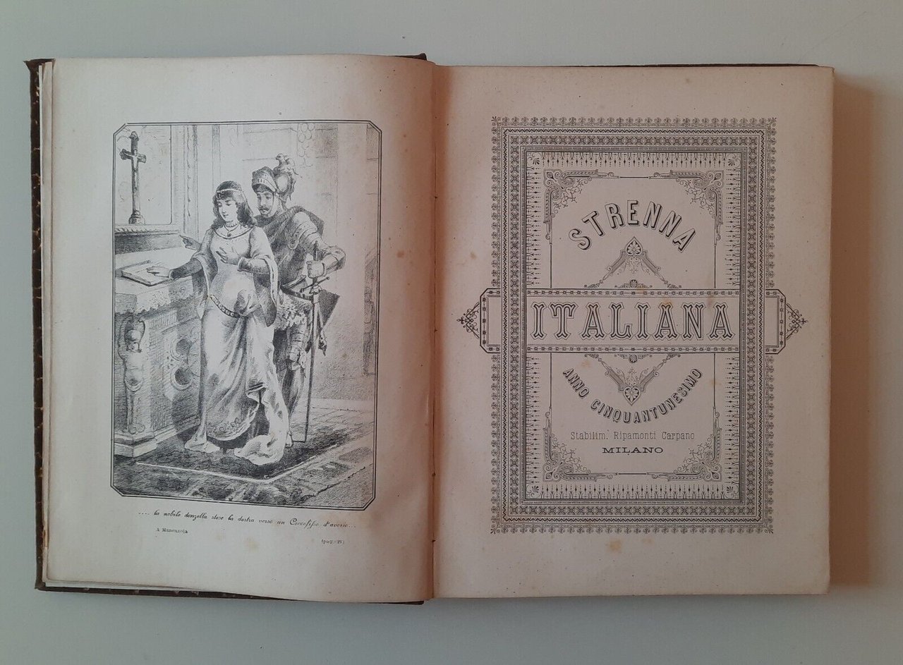 STRENNA ITALIANA ANNO LI MILANO STABILIMENTI RIPAMONTI CARPANO In 8° grande, pag. 202, legatura editoriale, copertina in velluto , ill. in b/n.In ottime condizioni, tenui macchie di umido alle pagine centrali.Ulteriori dettagli e immagini a richiesta.