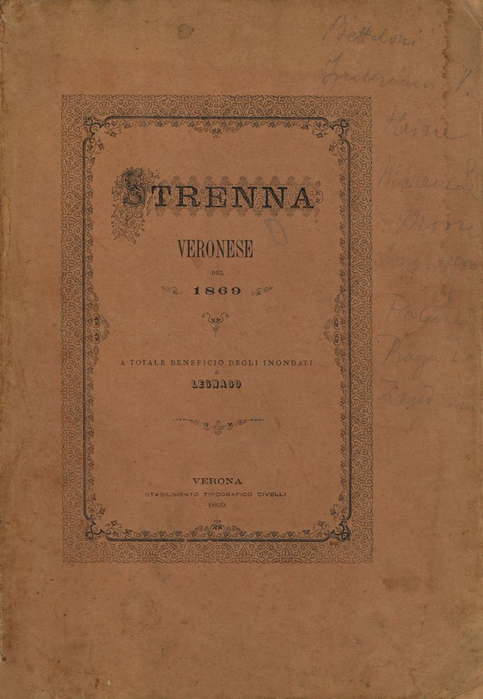 Strenna veronese del 1869, a totale beneficio degli inondati di Legnago. A cura di Manfroni, Mario
