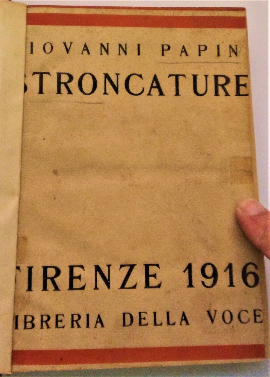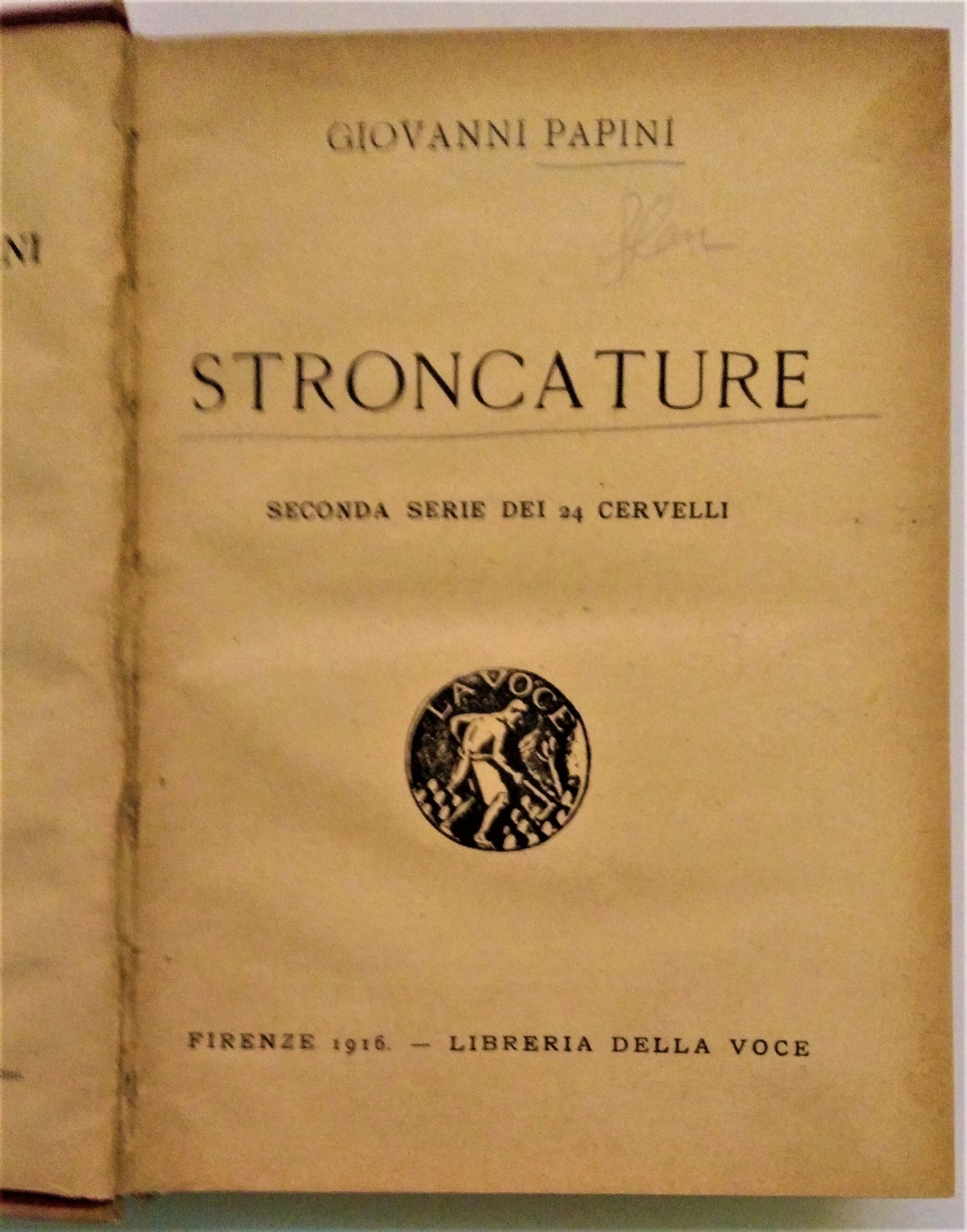 Firenze, Libreria della Voce, 1916. 16°, pp. VIII, 198, legatura artigianale in tela, tassello al dorso, conservata la brossura originale anteriore. Buona copia.
