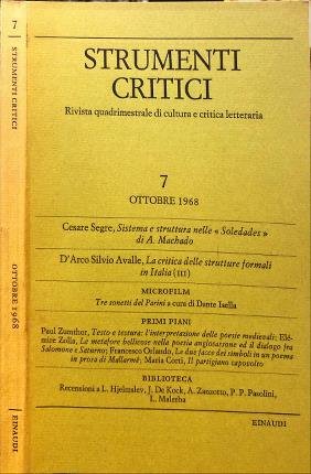 Strumenti critici 7. Ottobre 1968. Rivista quadrimestrale di cultura e critica letteraria.